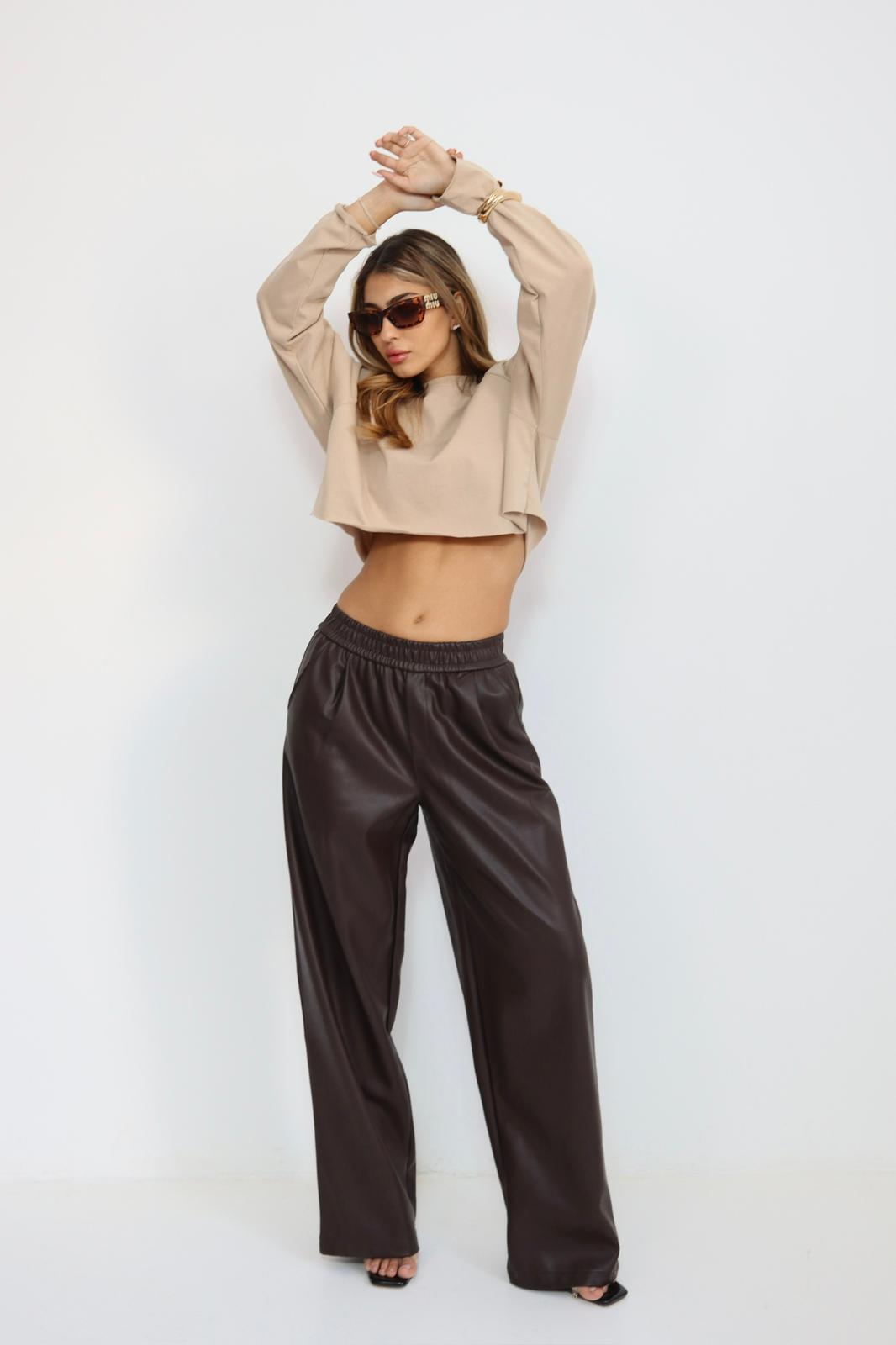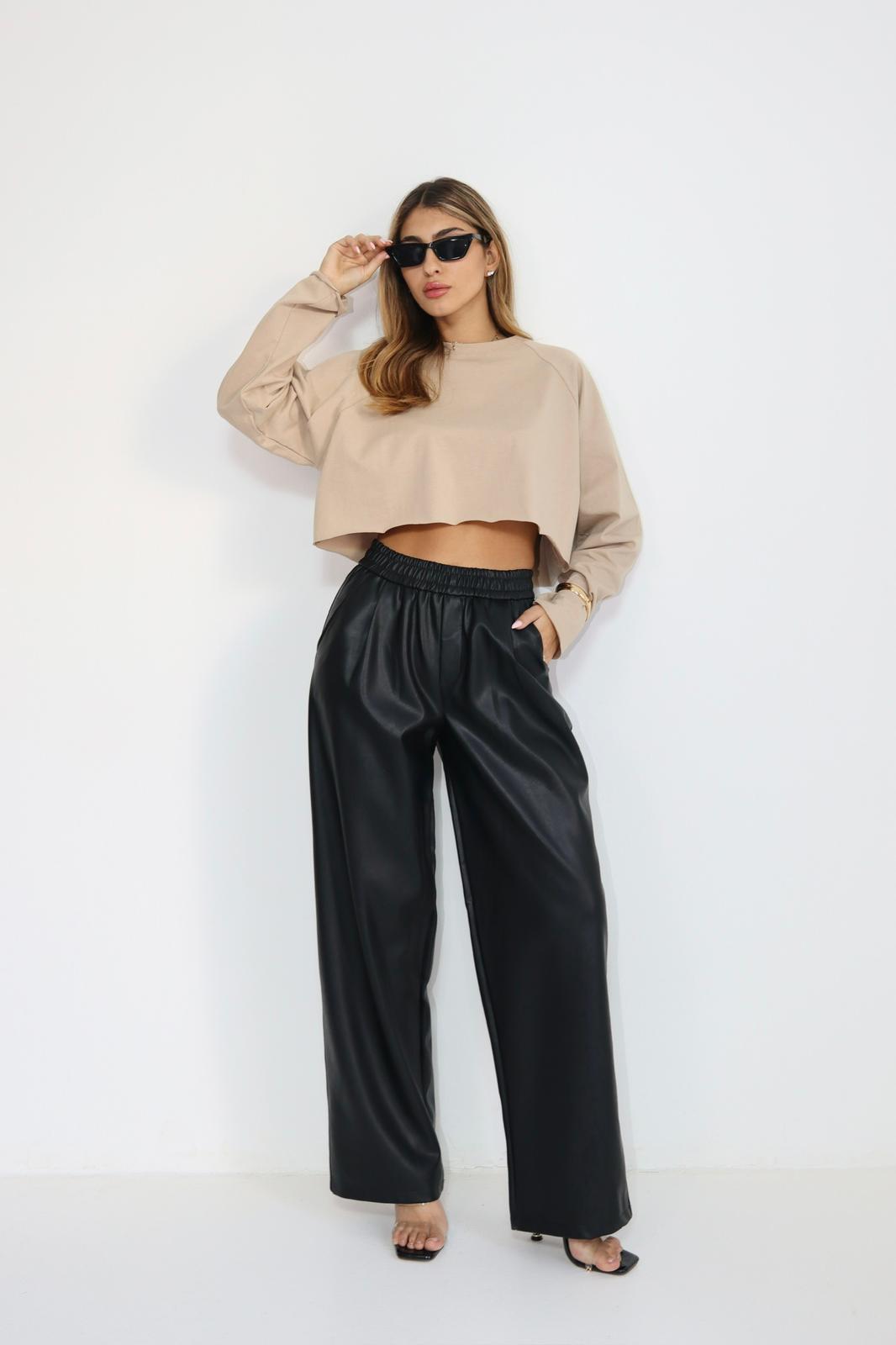 מכנס דמוי עור וויד לג — מכנס שמאזן בין נוחות ללוק מסודר.