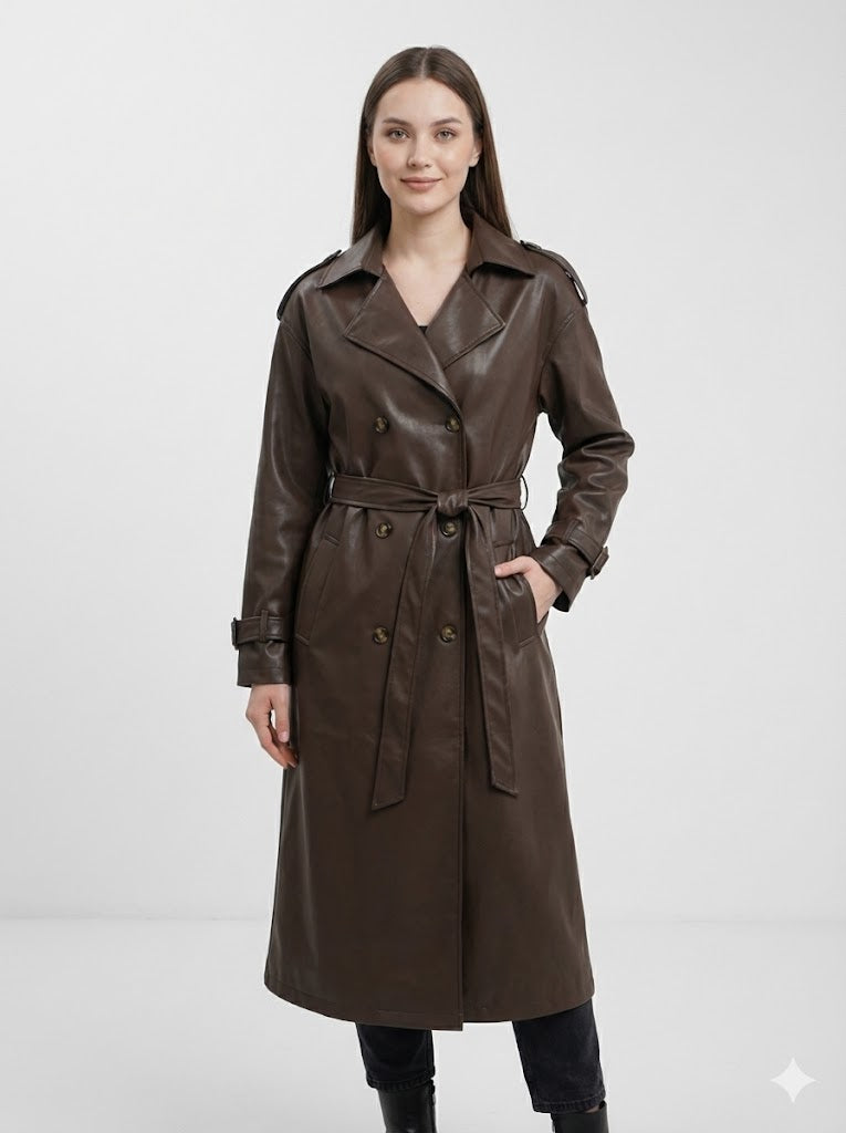 מעיל טרנץ דמוי עור — שכבת על שמרימה כל הופעה בשנייה.